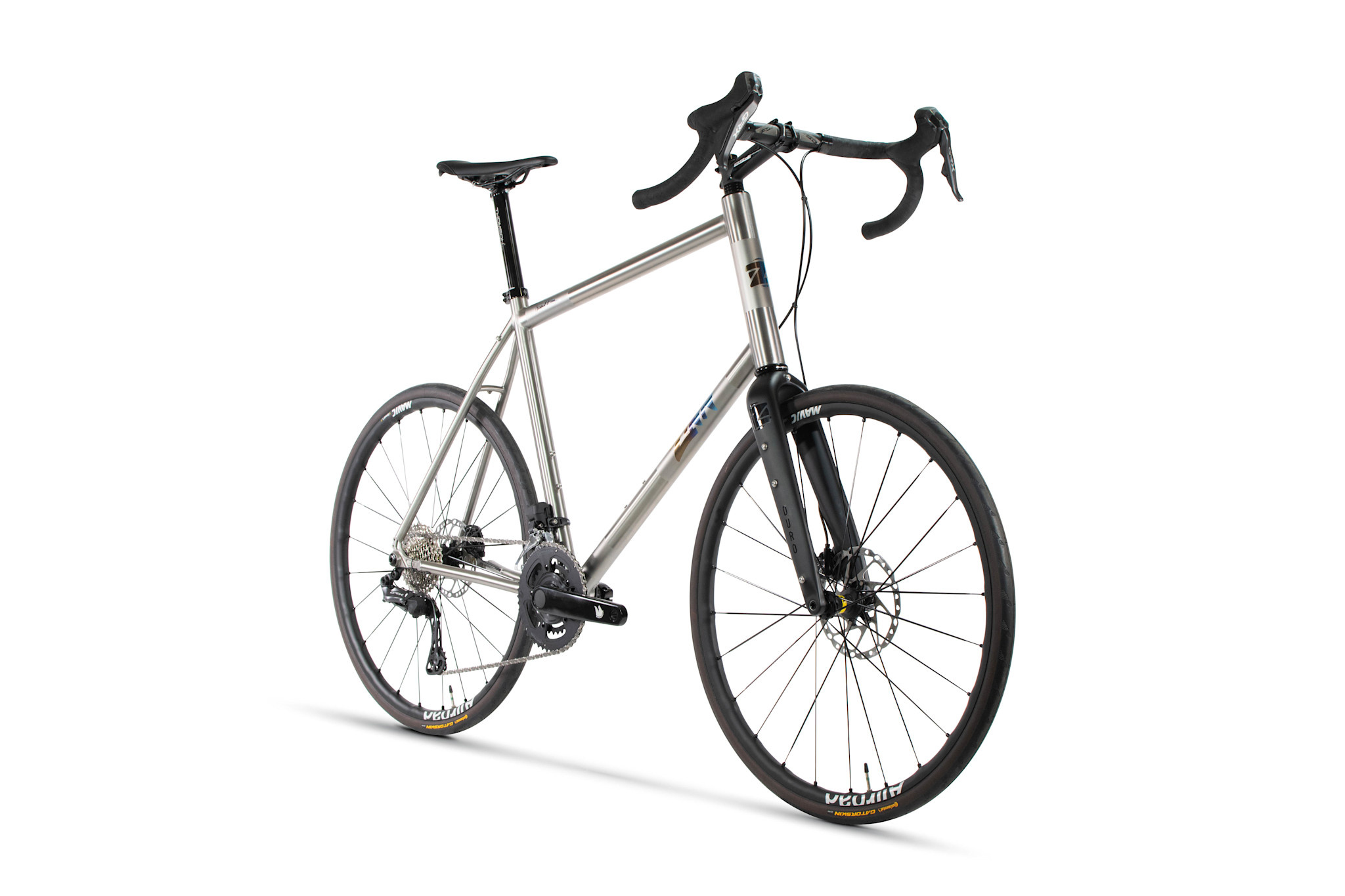 The Zinn Dolomite Ultegra is our custom all-road bike built with Shimano Ultegra Di2 2x12 speed electronic shifting components and the frame material of your choice.